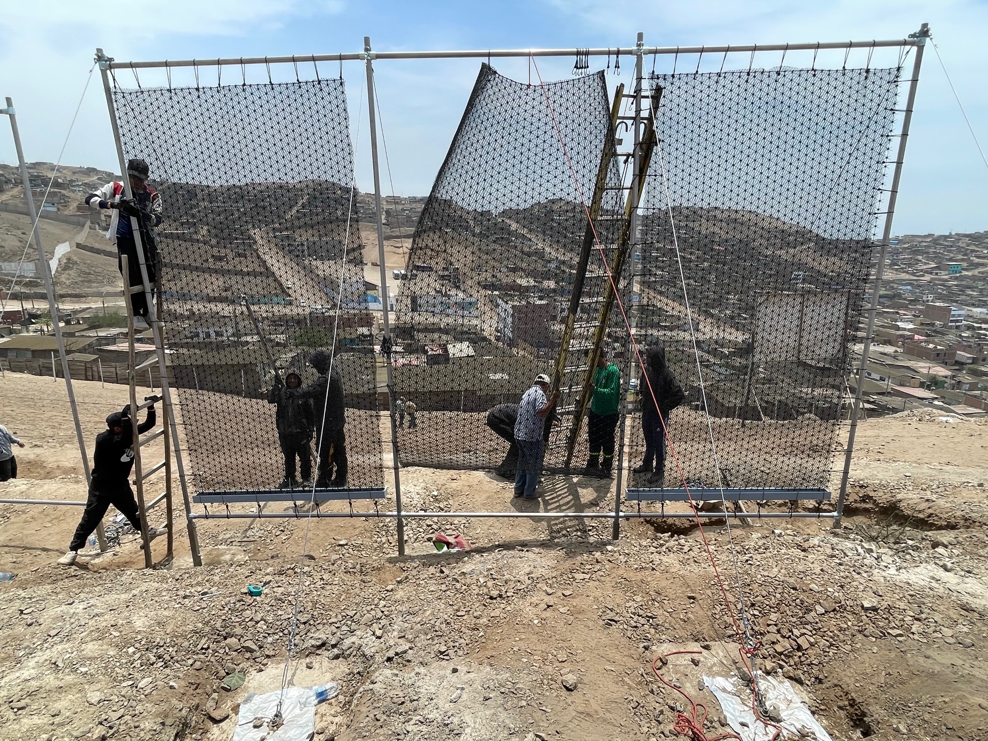 Die kleine Gemeinde ‚Santa Rosa‘ liegt in einer Wüstenregion vor den Toren der peruanischen Hauptstadt Lima. Einen Anschluss an die städtische Wasserversorgung gibt es nicht, und so waren die rund 300 Familien mit vielen Kindern bislang auf teure Wasserlieferungen privater Anbieter angewiesen. Doch seit kurzem machen sie sich eine klimatische Besonderheit zunutze: Sechs Monate im Jahr herrscht in ihrer Gegend starker Nebel. Sie fangen die Tröpfchen aus der feuchten Luft ein – dank einer Erfindung namens ‚Cloudfisher‘ – Wolkenfischer. Monica Denomy von der deutschen Wasserstiftung hat in Santa Rosa zusammen mit einem lokalen Partner, der NGO ‚Aprodes‘, Dutzende dieser windfesten und effizienten Nebelwasser-Kollektoren errichten lassen. Sie versorgen über tausend Menschen mit Trinkwasser. „Ihr Leben wird einfacher, weil man sich nicht jeden Tag darum kümmern muss, ob ausreichend Wasser vorhanden ist.“ Und es ist kostenlos. Das macht die Menschen unabhängig von den Wucher-Preisen der kommerziellen Wasserlieferanten.
